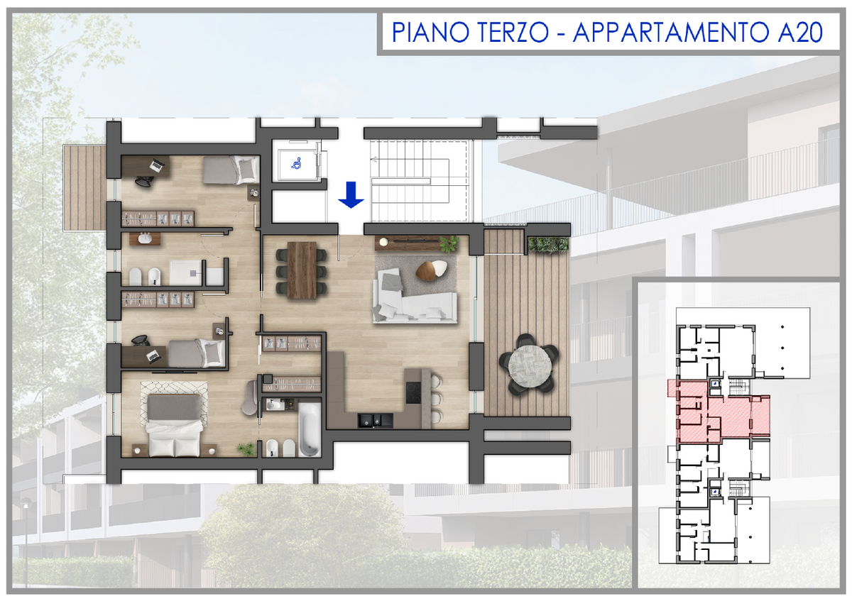 Residence All'Adige 3.0 - In prossima realizzazione, inserito in tranquilla zona residenziale a poca distanza dai servizi sia di Bussolengo che di Pescantina, proponiamo esclusivo appartamento al piano terzo con isplendido terrazzo abitabile di oltre 18 mq. L'unità A20 è composta da una luminosa zona giorno di oltre 40 mq, 3 camere da letto, 2 bagni e un ripostiglio/guardaroba. Notevole la possibilità di personalizzazione delle finiture interne che prevedono comunque un capitolato già di elevato standard qualitativo che comprende per esempio la pavimentazione in legno Listone Giordano su tutta la superficie dell’alloggio, la moderna linea Now di Bticino, docce in resina Ultraflat S delle dimensioni fino a 120x80 e tanto altro!